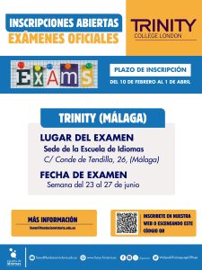 Para formalizar la inscripción en los exámenes, es imprescindible completar el formulario correspondiente al tipo de examen (Cambridge o Trinity) y a la sede elegida (Málaga o Costa). Los formularios están disponibles en escueladeidiomas.fvictoria.es.