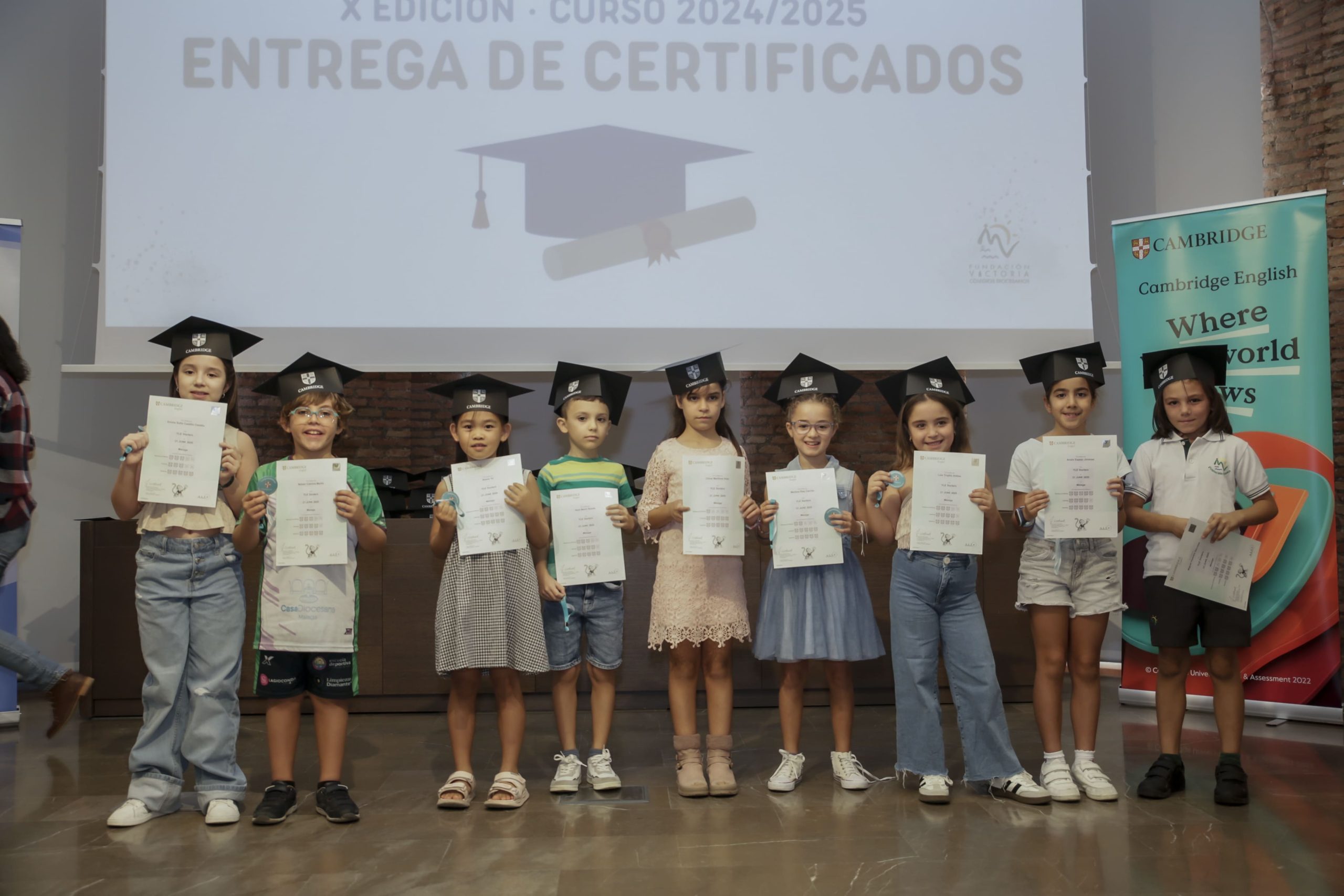 La Escuela de Idiomas Fundación Victoria celebró el pasado viernes 24 de octubre el acto de entrega de Certificados Oficiales, un encuentro muy especial que reunió a más de 380 asistentes entre alumnado, familias, profesorado e invitados, en un ambiente de reconocimiento al esfuerzo realizado durante el pasado curso 2024/2025. Durante la jornada, 150 alumnos fueron reconocidos por haber superado con éxito sus respectivas certificaciones oficiales.