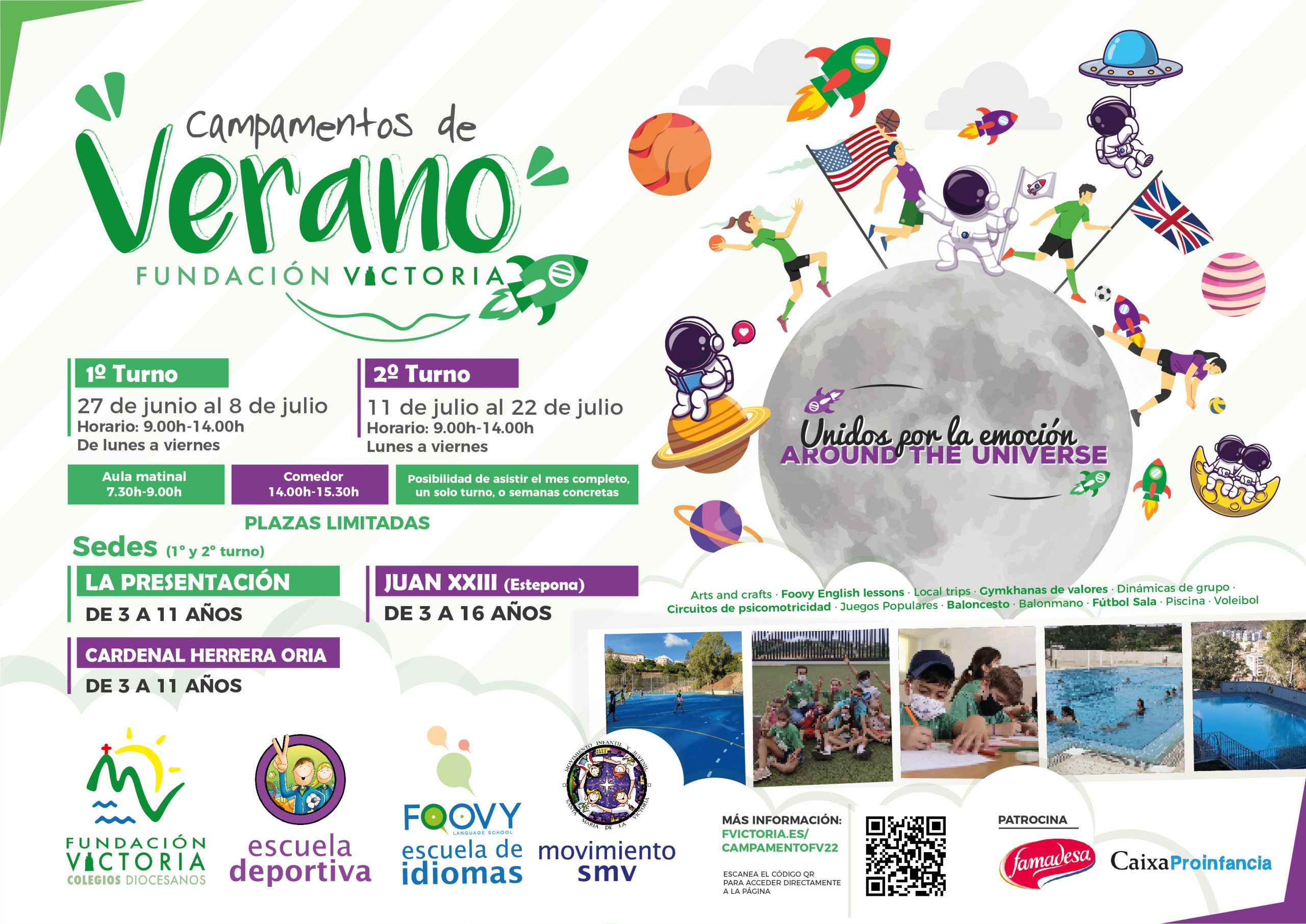 Fundación Victoria se encuentra inmersa, desde el pasado 27 de junio hasta finales de julio, en sus campamentos de verano organizados por la Escuela Deportiva, la Escuela de Idiomas “Foovy” y los Grupos SMV.