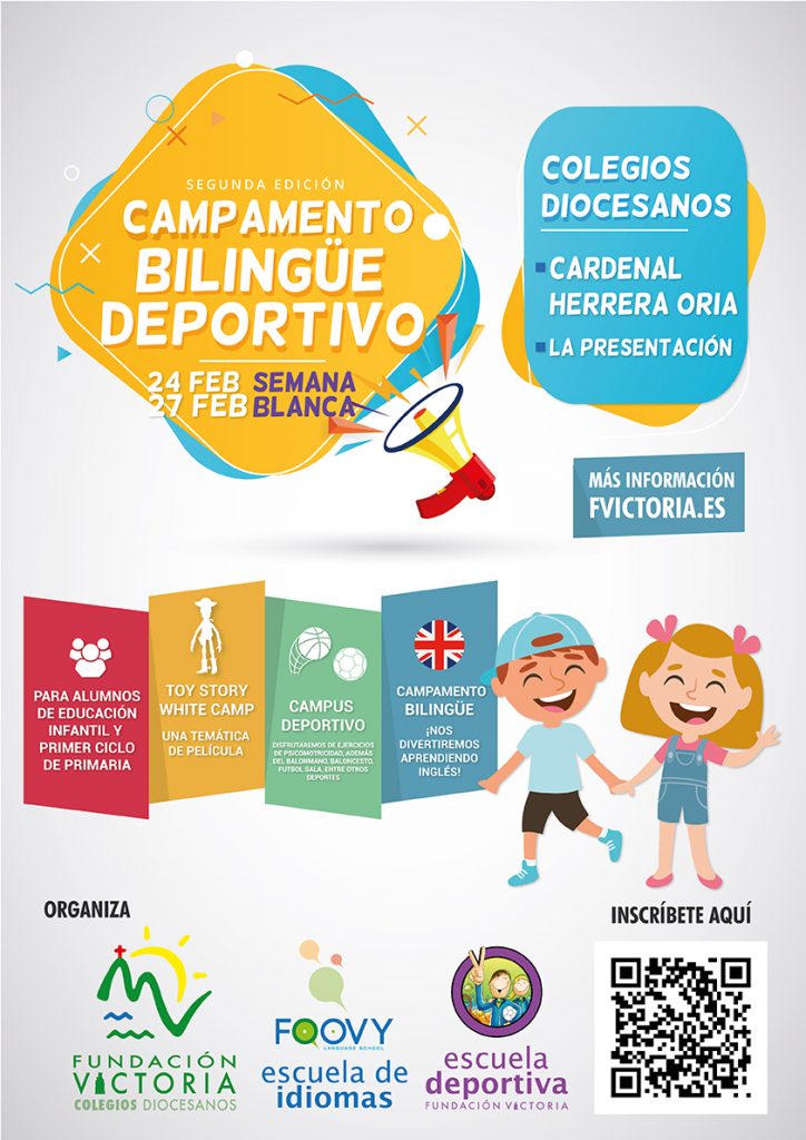 Las escuelas de Fundación Victoria, Foovy y Escuela Deportiva, organizan un año más un campamento bilingüe deportivo en los Colegios Diocesanos Cardenal Herrera Oria y La Presentación durante los días de Semana Blanca: del 24 al 27 de febrero. Las dos escuelas trabajarán juntas en un proyecto destinado a alumnos de entre 3 y …