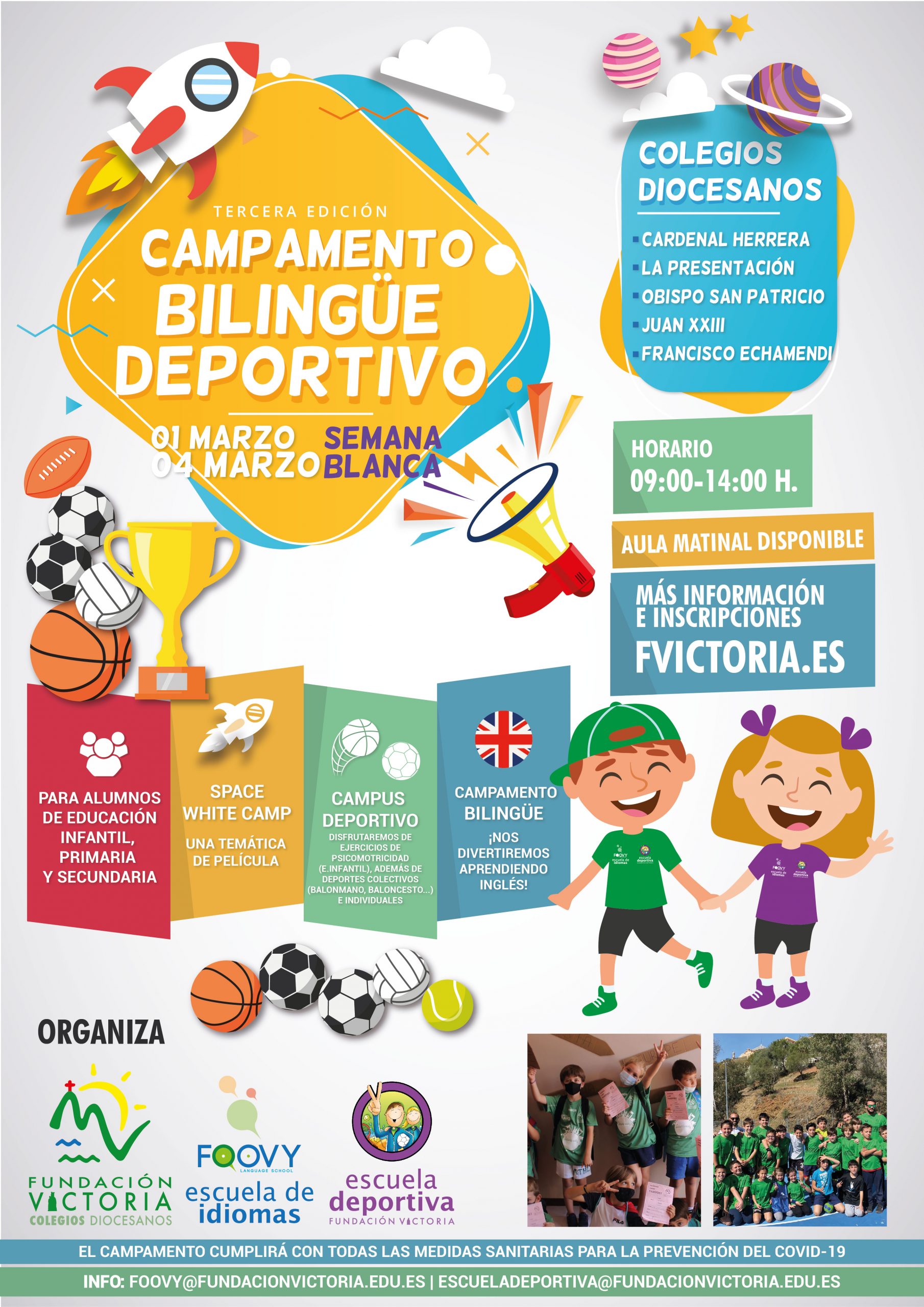 La Escuela de Idiomas ‘Foovy’ y la Escuela Deportiva organizan, un año más, el campamento bilingüe deportivo de Semana Blanca de Fundación Victoria, del 1 al 4 de marzo, en los Colegios Diocesanos Cardenal Herrera Oria, La Presentación, Obispo San Patricio (Málaga), Francisco Echamendi (Marbella) y Juan XXIII (Estepona). Las …
